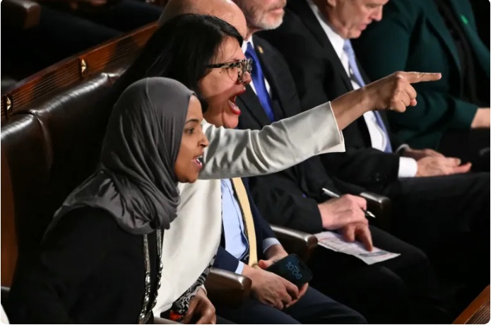 این دو نماینده در جریان سخنرانی ترامپ فریاد زدند: «شما آمریکایی ها را می کشید»در حالی که ایلهان عمر نیز او را «دروغگو» خواند.