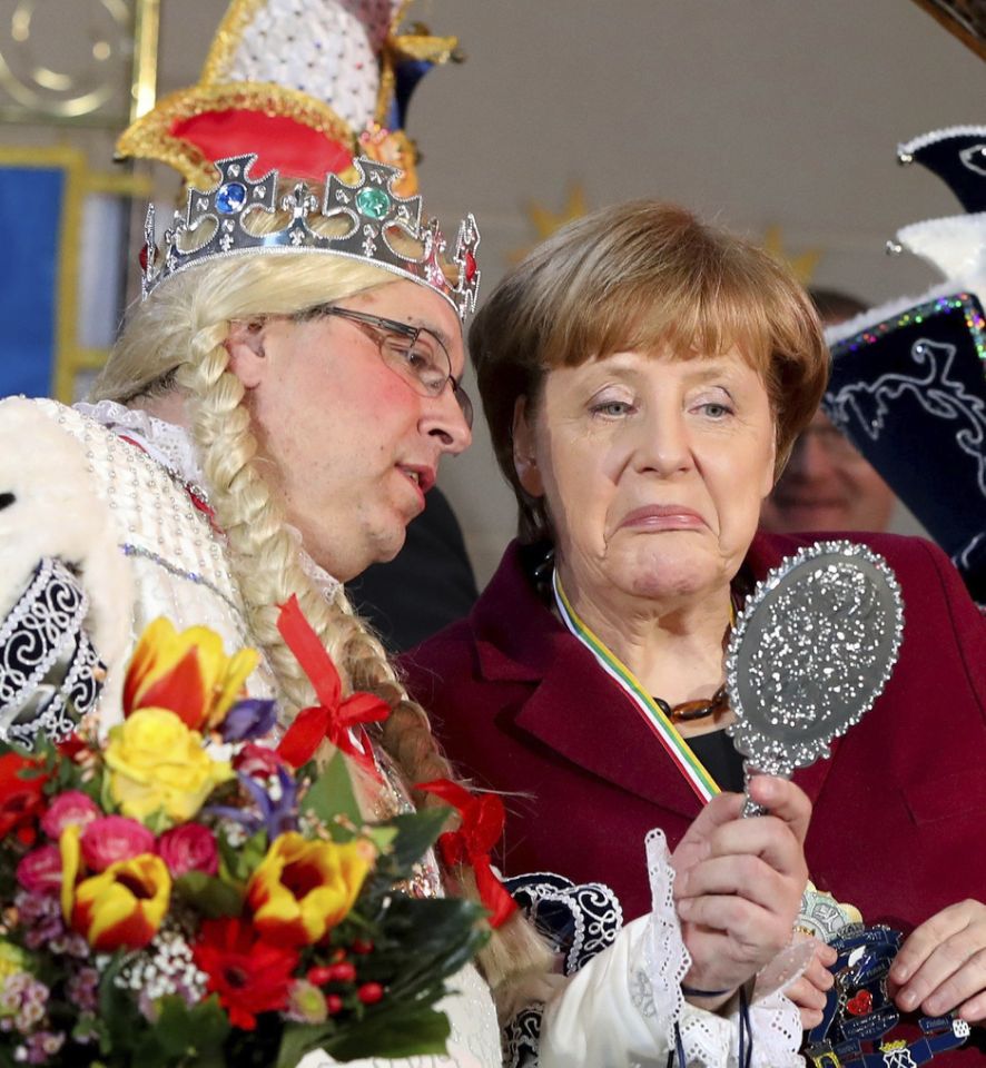 به گزارش پایگاه اطلاع رسانی و خبری جماران، «آنگلا مرکل» در مراسم کلوپ هایکارناوال آلمانی در دفتر صدراعظم در برلین شرکت کرد. سمت چپ، «سانرا آی» از کلوپ کارناوال در شهر «هامبورگ» نشسته است.
