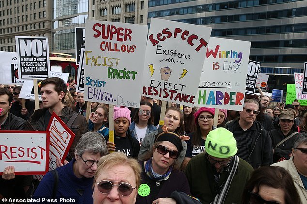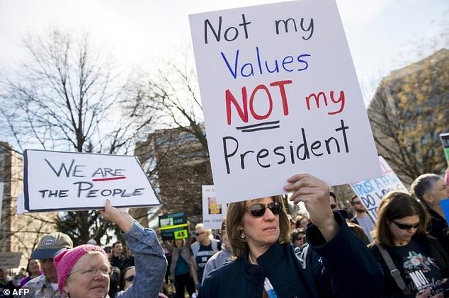 مخالفان رئیس جمهور آمریکا و سیاست های دولت او شعارهایی در حمایت از حقوق زنان، مهاجران و تغییرات آب و هوایی سر دادند.