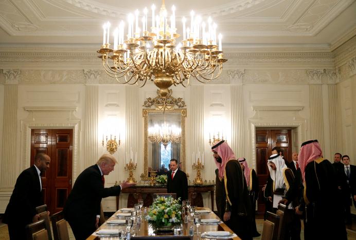 ترامپ رئیس جمهور جدید آمریکا است که مشتاق به شکستن تابوهای سلف خود است، و شاهزاده محمد هم رهبر جوان و بلندپروازی است که به دنبال افزایش نفوذ در پادشاهی خود است و حضور دیگران را برای این اهداف ضروری می بیند. آنها هیچ نشست خبری نداشتند؛ چه در هنگام دست دادن در کاخ سفید و چه در هنگام نشستن در پشت میز ناهار.