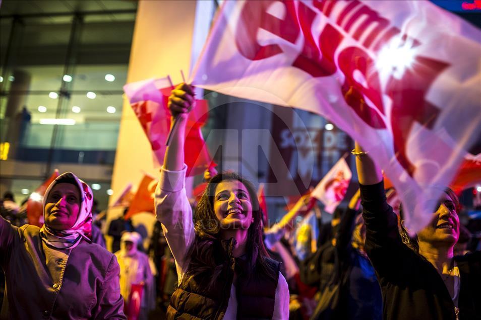 طرفداران رجب طیب اردوغان و حزب حاکم ترکیه پیروزی جنبش رای آری را در همه پرسی این کشور جشن گرفتند.