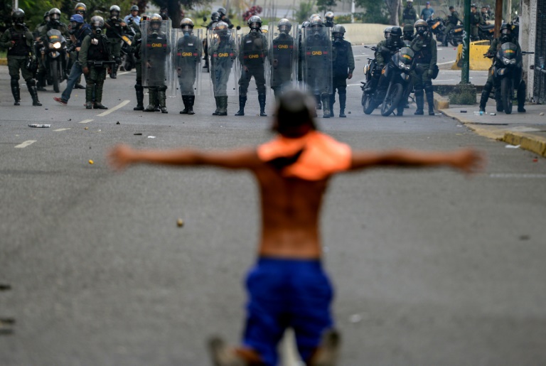 به گزارش پایگاه اطلاع رسانی و خبری جماران، یکی از فعالان مخالف در ونزوئلا در برابر پلیس ضد شورش ونزوئلا در جریان تظاهراتی در کاراکاس ایستاده است.
