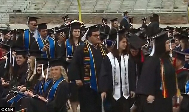 باقی دانشجویان نیز برای آنها دست زدند و آنها را تشویق کردند.