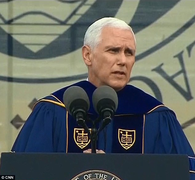 ده‌ ها فارغ ‌التحصیل همراه با خانواده شان همزمان با آغاز سخنرانی «مایک پنس» معاون «دونالد ترامپ» در جشن فارغ التحصیلی دانشگاه نوتردام در ایالت «ایندیانا»، مراسم را ترک کردند.