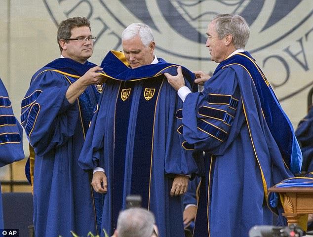 پنس که فرماندار سابق ایندیانا به شمار می ‌رود و در این ایالت هم به دنیا آمده و 12 سال نماینده آن در کنگره بوده است، پس از اعتراض دانشجویان و کارکنان دانشگاه نوتردام به پیشنهاد دعوت از ترامپ برای سخنرانی به این مراسم دعوت شد.