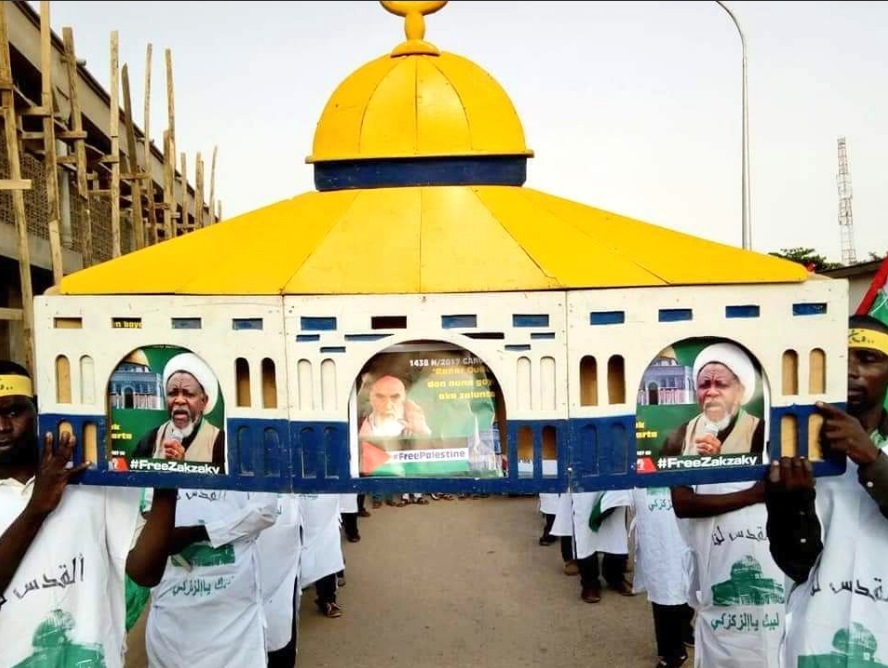 مردم نیجریه در این تظاهرات تصاویری از «شیخ ابراهیم زکزاکی» رهبر جنبش اسلامی نیجریه را نیز در دست داشتند.