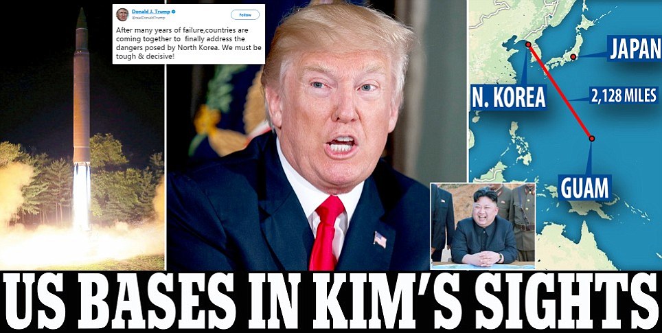 همزمان با تشدید درگیری های لفظی میان رهبران آمریکا و کره شمالی، پیونگ یانگ در مورد حمله به گوام(محل استقرار بمب افکن های راهبردی آمریکا) هشدار داد.