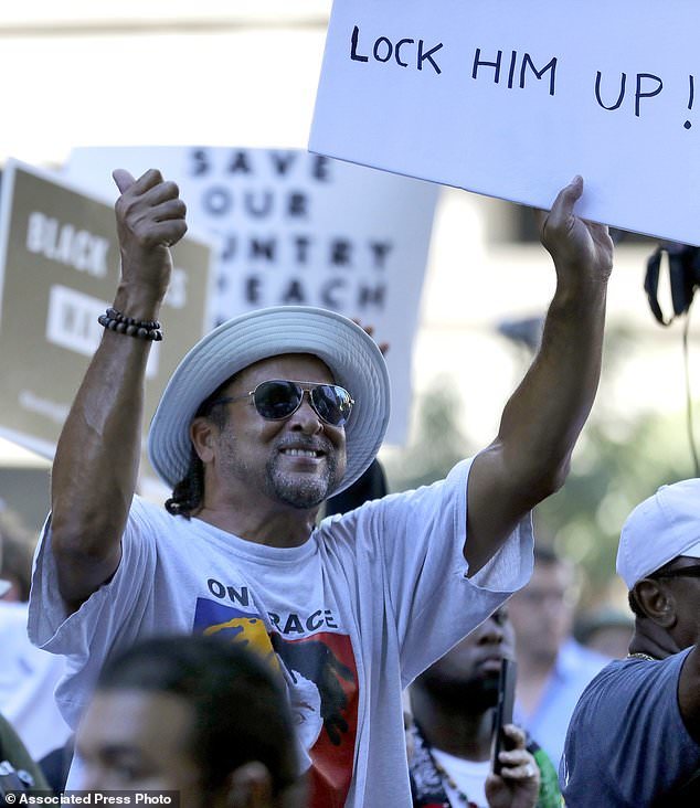 روی برخی از پلاکاردهای معترضان نوشته شده بود: «ترامپ سمی» و «ترامپ را به زندان بیاندازید!»