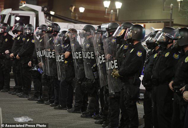 تظاهرات علیه ترامپ با ورود پلیس به خشونت کشیده شد و برخی معترضان نیز به سمت ماموران، اشیا و بطری پرتاب کردند.