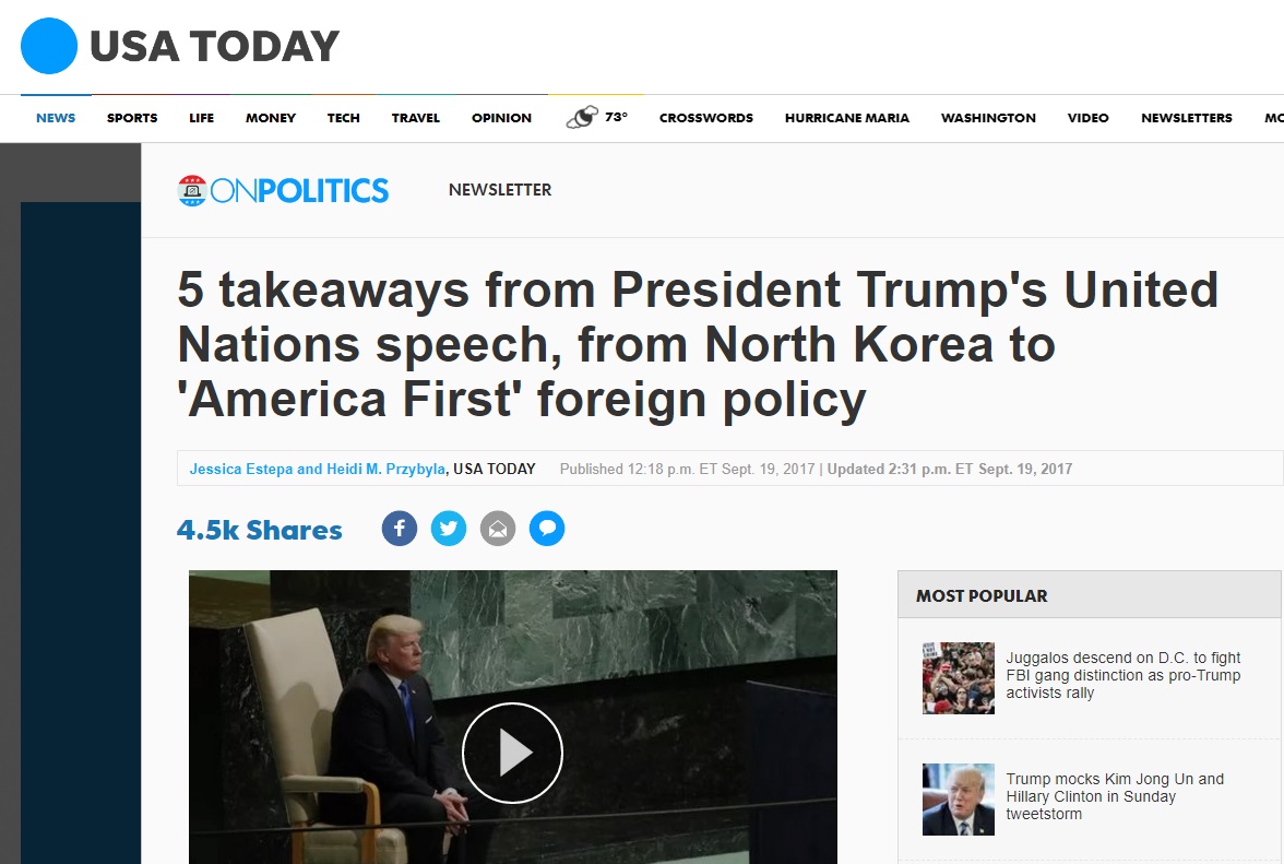 به گزارش پایگاه اطلاع رسانی و خبری جماران، روزنامه آمریکایی یو اس ای تودی در گزارشی نوشت: به نظر می رسد ترامپ با سخنرانی خود درباره توافق هسته ای ایران این پیام را داد که آمریکا به زودی عدم پایبندی ایران به برجام را اعلام می کند.