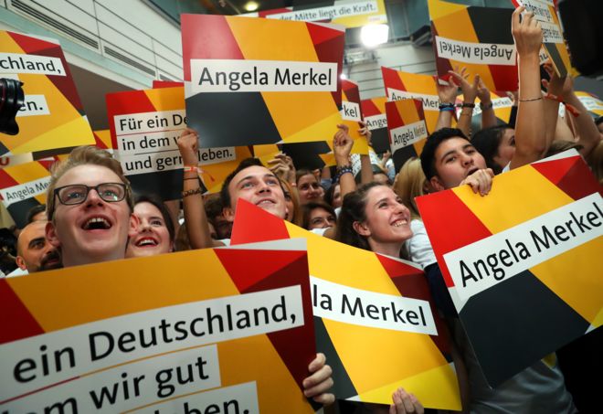 بر اساس نظرسنجی‌ های بعد از انتخابات حزب محافظه‌کار دموکرات مسیحی به رهبری «آنگلا مرکل» صدراعظم آلمان با کسب 32.5 درصد آراء پیشتاز است و صدراعظمی وی برای چهارمین دور تضمین شده است.