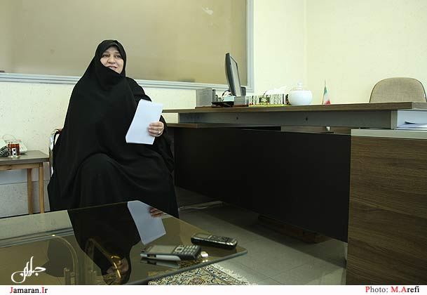 من در خانم دیدم که یک زن میتواند با روحیه محکم پشتوانه اهداف همسر باشد.در زمان جنگ یادم میآید که هر شب بمباران هوایی و صدای پدافندهای جماران، در خانه قدیمیو سست امام چه فضایی را ایجاد میکرد. خیلی از شبها من آنجا بودم. یکبار در حین اینکه پدافند هوایی تمام دیوارها و شیشهها را تکان میداد، خانم در نور شمع و تاریکی اتاق گفتند:" چرا ملافۀ روی نیمکت کج انداخته شده! من و دختر کوچک سهسالهام (هدی) و آقا (امام) را سرگرم مرتب کردن ملافه کردند و به این ترتیب فضای سنگین اتاق را برای من و دخترم به حالت عادی برگرداندند و این عمل هر بار به شکل جدیدی تکرار میشد.