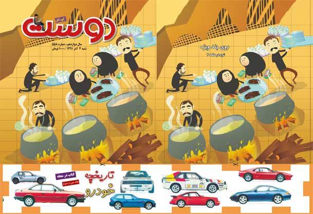 «بازی دوست» این شماره نیز افرادی را در حال تهیه‌ی غذای مراسم عزاداری تاسوعا و عاشورای حسینی نشان می‌دهد. این تصویر در پشت جلد هم تکرار شده است. اما با کمی دقت می‌توان بین این دو تصویر تفاوت‌هایی را پیدا کرد. در واقع از مخاطبین این هفته نامه خواسته شده است که قلم بردارند و این تفاوت‌ها را علامت بزنند.