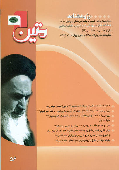مقاله «حجیت استصحاب کلی از دیدگاه امام خمینی(س) و میرزا حسن بجنوردی به قلم سید محمد موسوی بجنوردی و الهام شریعتی نجف آبادی نخستین مقاله این شماره مجله متین است. در بخشی از این مقاله میخوانیم: استصحاب کلی از دیدگاه دو اصولی معاصر؛ امام خمینی و میرزا حسن بجنوردی، مقایسه میشود. استصحاب کلی استصحابی مفهومی است که قابل صدق بر افرادی کثیر است که بر مبنای مشهور اصولیین به سه نوع تقسیم میشود. امام خمینی استصحاب را در کلی نوع اول و کلی نوع دوم جاری میداند. ایشان اشکال مهم و وارد بر کلی نوع دوم با قول به وحدت عرفیه پاسخ داده و سپس با بیان یک تفصیل که به اعتبار چگونگی لحاظ عرف نسبت به ویژگیهای فردی یا قدر مشترک افراد است، کلی نوع سوم را تبیین میکنند. از دیدگاه ایشان در کلی نوع سوم اگر عرف، ویژگیهای شخصی را مورد توجه قرار داده باشد، استصحاب جاری نیست ولی اگر ملحوظ عرف، قدر جامع افراد باشد استصحاب جریان دارد.