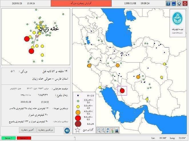 زلزله 5.1 ریشتری حوالی خانه زنیان فارس را لرزاند.