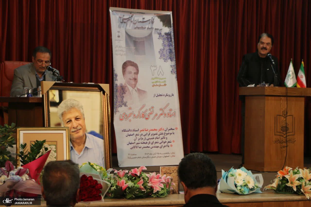به گزارش جماران، محمدرضا نصر، عضو هیأت علمی دانشگاه اصفهان، طی سخنانی در این نشست با موضوع  نقش تصویرگرایی در شعر اصفهان و تأثیر امام خمینی (ره) بر آن،  با  تجلیل از استاد احتشامی ایشان را به عنوان «افتخار دویست سال اخیر شعر نواحی مرکزی ایران» و شاعری فراتر از رتبه‌بندی‌های متعارف معرفی نمود و در ادامه ضمن تقدیر از دکتر مرتضی کارگر به معرفی ایشان به عنوان شاعری برجسته و از شاگردان مکتب ادبی اصفهان با پنج دهه فعالیت فرهنگی و ادبی پرداخت.