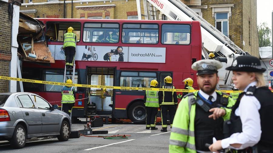 اتوبوسی دو طبقه در شهر لندن در برخورد با یک فروشگاه باعث مصدوم شدن 17 نفر شد.