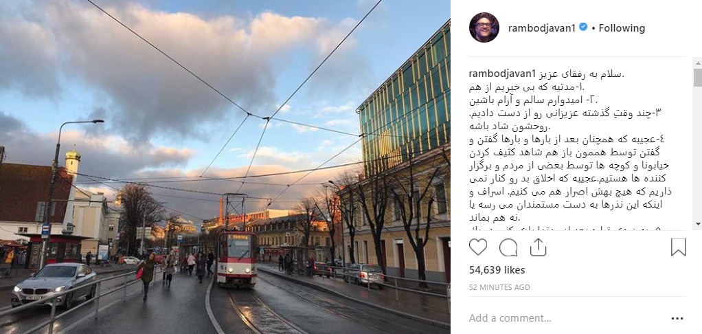 به گزارش جی پلاس، رامبد جوان پس از اتمام پخش برنامه «خندوانه»، متنی را در اینستاگرام منتشر کرده و با مخاطبانش سخن گفت، این متن به شرح زیر است:
