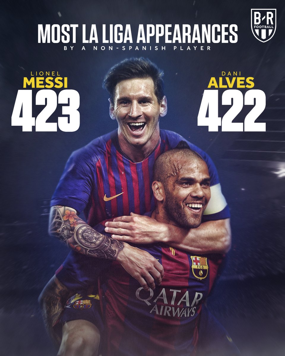 به گزارش جی پلاس، لیونل مسی به رکورد 423 بازی به عنوان بازیکن خارجی در تاریخ لالیگا رسید و از این حیث بالاتر از دنی آلوز رکورددار شد.
