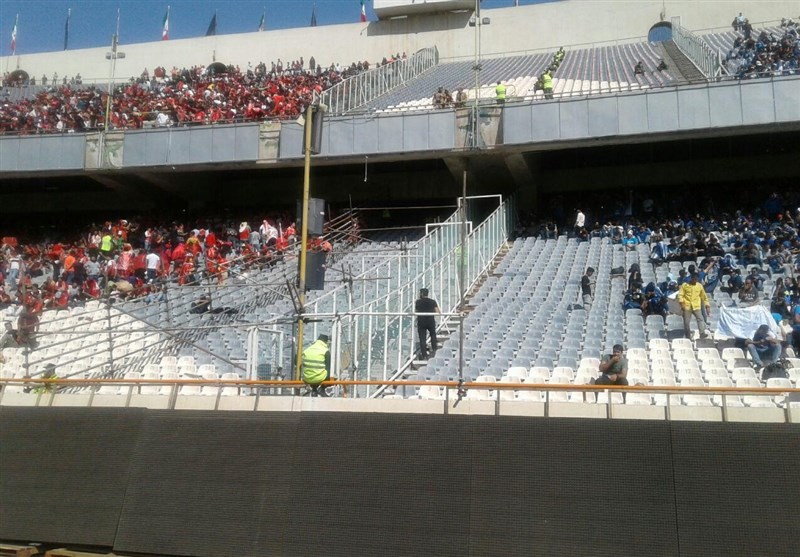 *در قسمتی از ورزشگاه، کار مقاوم سازی تمام نشده و به همین دلیل مسئولان برگزاری مسابقه با نصب داربست به هواداران پرسپولیس اجازه حضور در آن قسمت را ندادند.