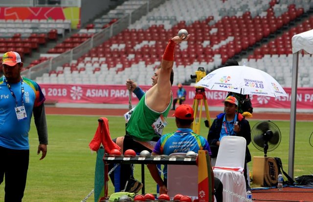 پرتابگر وزنه کشورمان موفق به کسب مدال طلای رقابت های پرتاب وزنه مردان بازیهای پاراآسیایی 2018 شد.