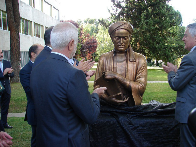 مجسمه ابوعلی سینا که در تهران ساخته شده بود، توسط مسئولان شهری در دانشگاه آتونومای مادرید در اسپانیا رونمایی شد.