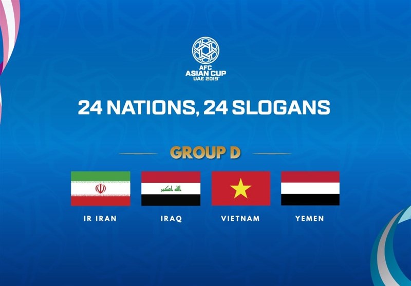 ایران در گروه D مسابقات جام ملتهای آسیا با تیمهای ایران، عراق، ویتنام و یمن همگروه است و شعاری که بیشترین رأی را در نظرسنجی AFC بیاورد، روی اتوبوس تیم ملی نقش خواهد بست. بازیهای جام ملتهای آسیا بین تاریخهای 5 ژانویه تا یک فوریه 2019 (15 دی تا 12 بهمن) به میزبانی امارات برگزار خواهد شد.