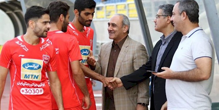مهدی تاج و حمیدرضا گرشاسبی در رختکن تیم فوتبال پرسپولیس حاضر شدند.