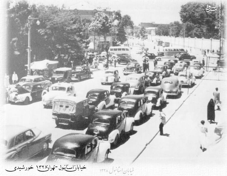 عکسی از ترافیک چهارراه استانبول در سال 1328 منتشر شد.