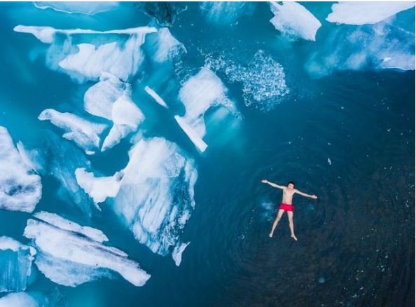 به گزارش جی پلاس، ماگنوس هینمتس، عکاس عکس امروز نشنال جئوگرافیک از یک هواپیمای بدون سرنشین استفاده کرد تا لحظه تحقق بزرگترین آرزوی خود را ثبت کند. او به جزیره ایسلند رفت و در میان توده‌های یخی شنا کرد.