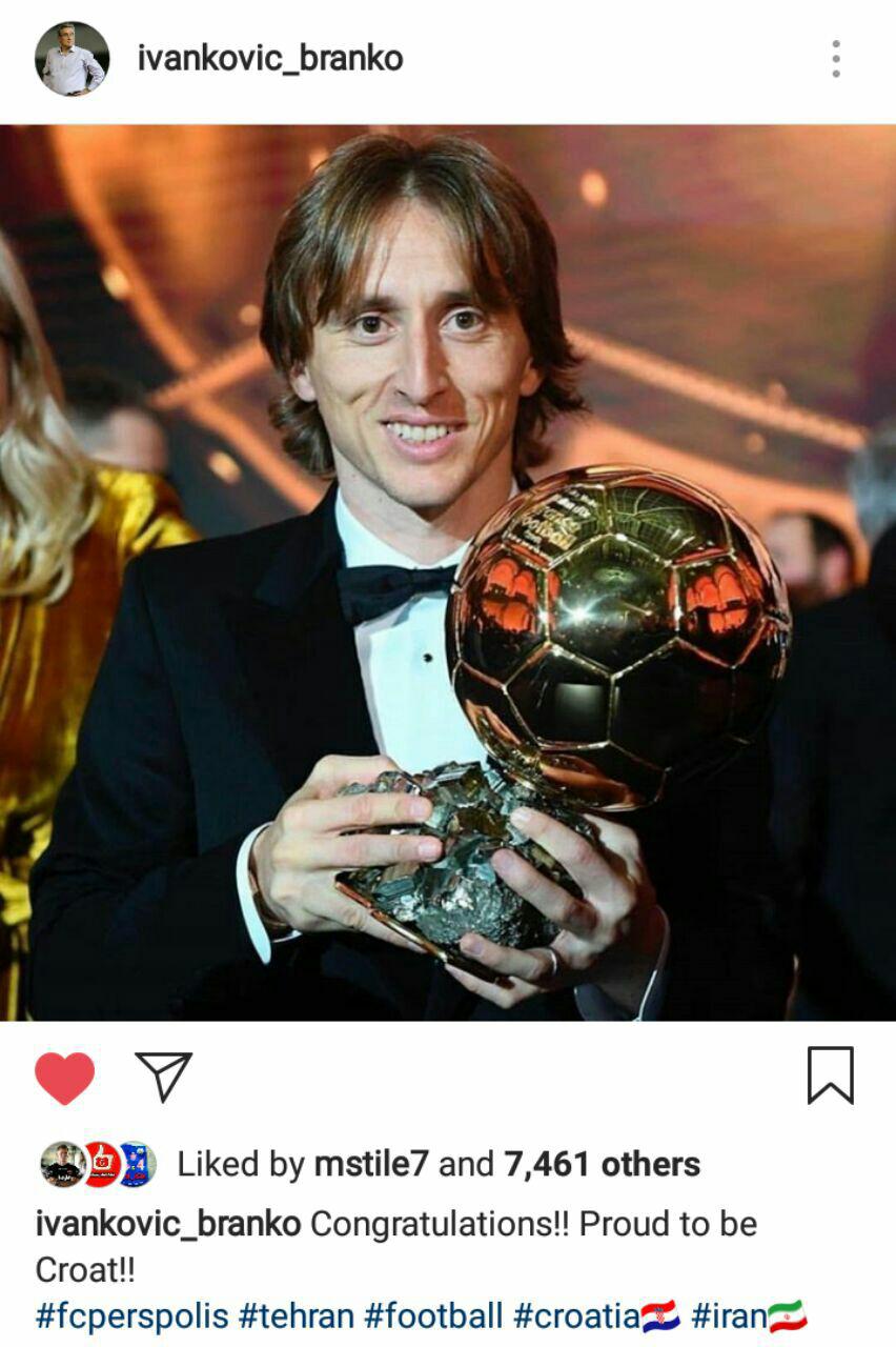 به گزارش جی پلاس، برانکو ایوانکوویچ با ارسال پستی در اینستاگرام به مودریچ برای کسب توپ طلا تبریک گفت.