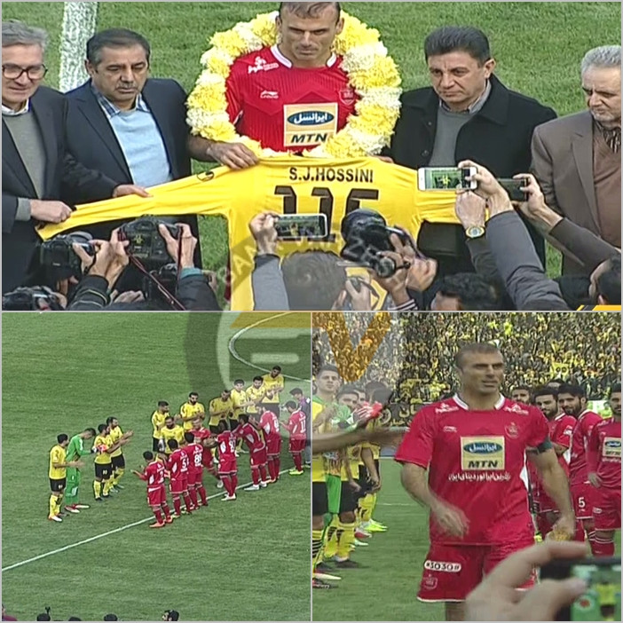 ضمن اینکه به مناسبت خداحافظی حسینی از بازی‌های ملی، پیراهن سپاهان با نقش 115 بازی ملی در دستان کاپیتان سرخپوشان و بازیکن سابق طلایی پوشان قرار گرفت.