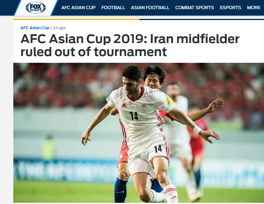 سایت فاکس اسپورت خط خوردن هافبک استقلال از لیست تیم ملی کشورمان را برای مسابقات جام ملت های آسیا 2019 بازتاب داد.