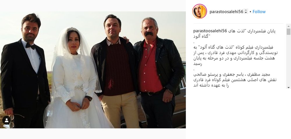 به گزارش جی پلاس، پرستو صالحی بازیگر سینماوتلویزیون تصویری از خود را در لباس عروس پشت صحنه یک فیلم سینمایی در اینستاگرام منتشر کرد و نوشت: «پایان فیلمبرداری «لذت های گناه آلود»، فیلمبرداری فیلم کوتاه «لذت های گناه آلود» به نویسندگی و کارگردانی مهدی فرد قادری، پس از هشت جلسه فیلمبرداری و در دو مرحله به پایان رسید. مجید مظفری ، یاسر جعفری و پرستو صالحی نقش های اصلی هشتمین فیلم کوتاه فرد قادری را به عهده داشته اند. مهدی فرد قادری که اخیرا مراحل فنی دومین فیلم سینمایی‌اش «بی وزنی» به اتمام رسیده است، این فیلم کوتاه را در لوکیشن گاوداری کارگردانی کرده است. «لذت های گناه آلود» در مدت زمان پانزده دقیقه و در فضایی جنایی، فانتزی و با جا به جایی زمان روایت می شود.»