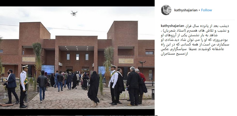 همسر محمدرضا شجریان با انتشار پستی در اینستاگرام خود از افتتاح باغ هنر بم ابراز خوشحالی کرد.