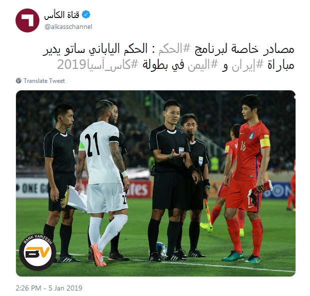 داور دیدار ایران و یمن در جام ملت‌های آسیا مشخص شد.