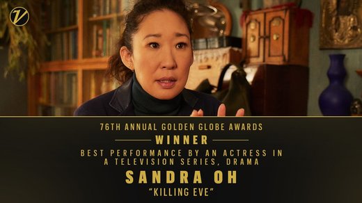 ساندرا اوه برای بازی در سریال درام «کشتن ایو» برنده این جایزه شد. «کشتن ایو» (Killing Eve) مجموعه تلویزیونی انگلیسی است که سال ۲۰۱۸ از شبکه بیبیسی آمریکا پخش شد.