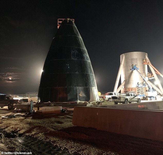 این آخرین تصاویر، نمای واضحتری از دو بخشی را نشان میدهد که پیش از این در اواخر ماه قبل ایلان ماسک نشان داده بود. در این تصاویر، مهندسانی حضور دارند که روی ساخت مخروط دماغه و بخش دیگری از این سیستم بزرگ کار میکنند.