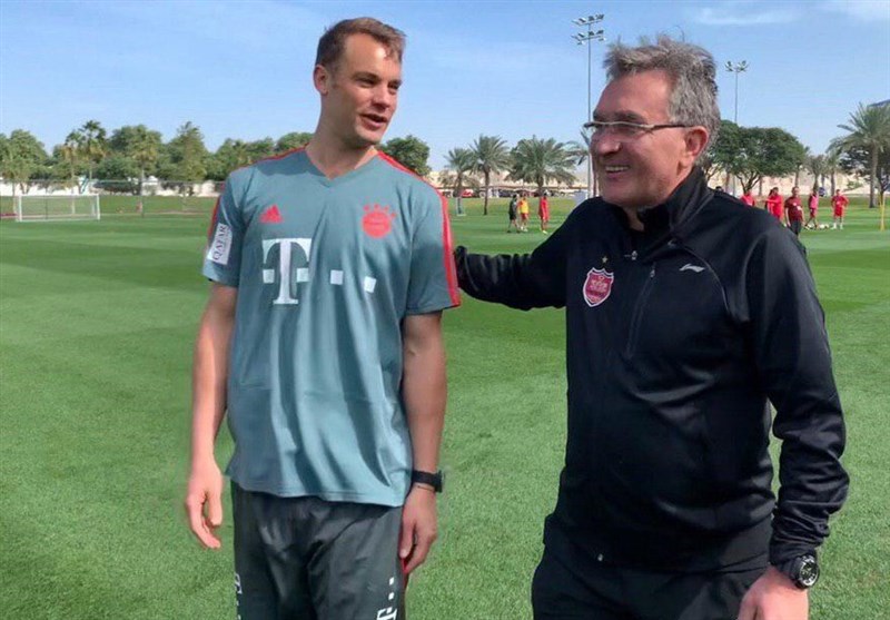 به گزارش جی پلاس، مانوئل نویر دروازه‌بان تیم فوتبال بایرن مونیخ صبح امروز (پنجشنبه) در تمرین تیم فوتبال پرسپولیس حاضر شد و دقایقی با برانکو، ایگور پانادیچ و دروازه‌بان‌های این تیم دیدار و گفت‌وگو کرد.