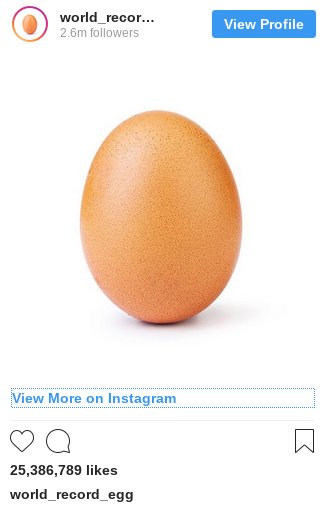 عکسی از یک تخم‌مرغ رکورددار بیشترین لایک در شبکه اجتماعی اینستاگرام شد.