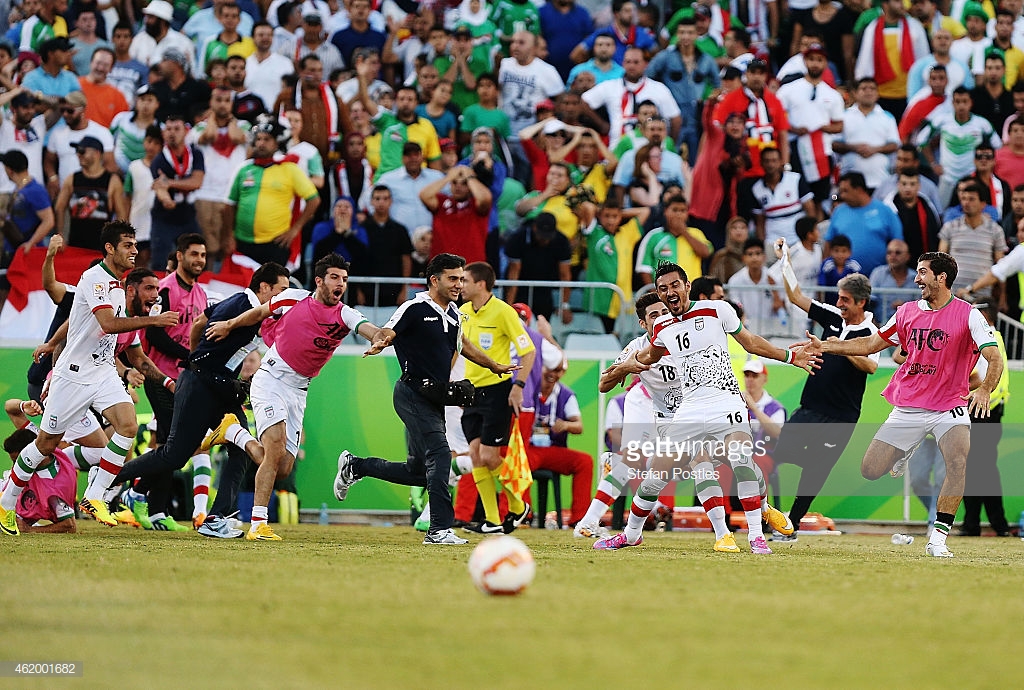 یک چهارم نهایی جام ملت های 2015 استرالیا که بازی پس از 120 دقیقه به تساوی 3-3 رسید اما عراقی ها در ضربات پنالتی 7- 6 به پیروزی رسیدند و به نیمه نهایی رفتند.