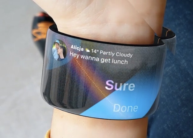 طرح اولیه یگ گجت پوشیدنی یا اکسسوری هوشمندی ارائه شده که در حقیقت نمایشگر «او ال ای دی» انعطاف پذیری است که دور دست می پیچید و اطلاعات مورد نیاز کاربر را در اختیارش قرار می دهد.