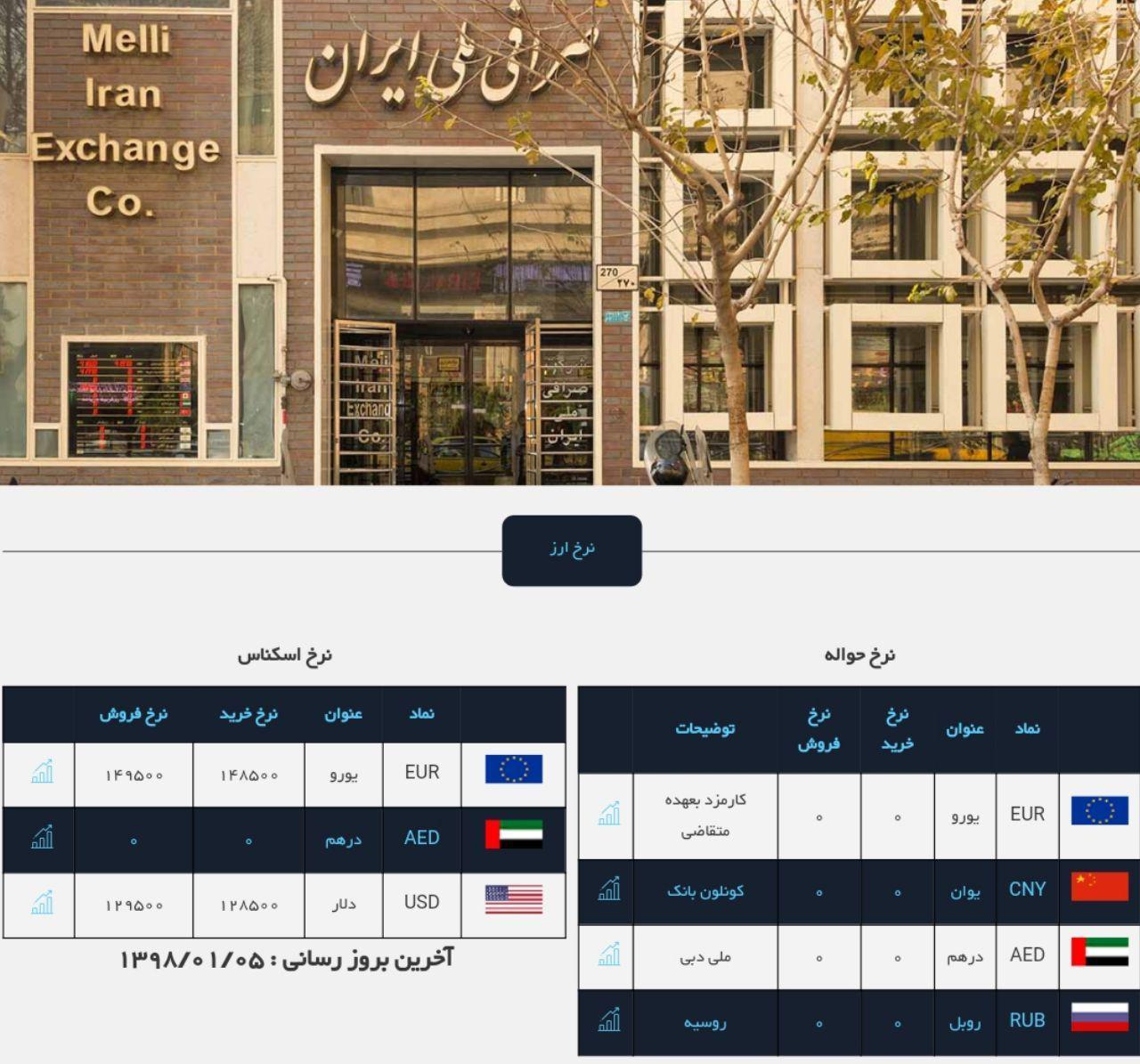 صرافی ملی قیمت دلار و یورو را در اولین روز کاری سال 98، بدون تغییر اعلام کرد.