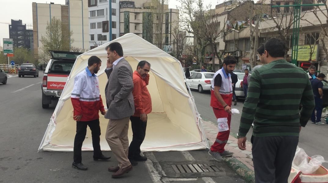 مقابل ساختمان سازمان لیگ فوتبال ایران چادر سازمان هلال احمر نصب شده تا کمکهای مردمی برای ارسال به مناطق سیل زده جمع آوری شود.