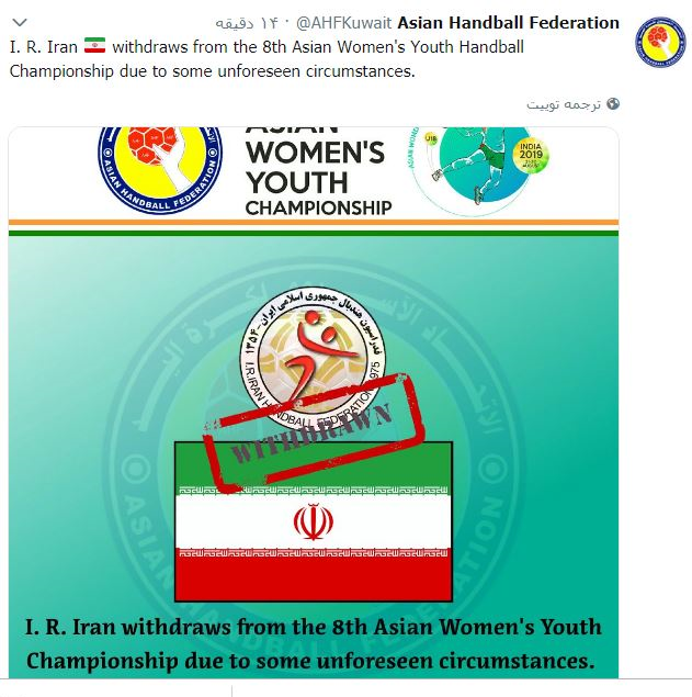 پیش از این فدراسیون هندبال ایران انصراف تیم هندبال جوانان کشورمان را از مسابقات قهرمانی آسیا اعلام کرده بود.