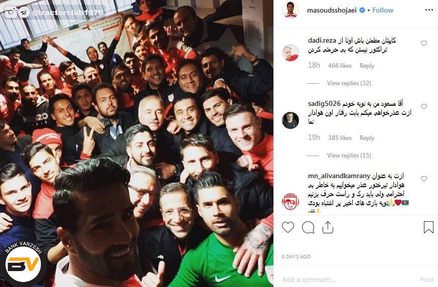 هواداران تراکتوری که هنوز به قهرمانی تیمشان در این فصل امید دارند، در صفحه اجتماعی شجاعی از وی به خاطر این اتفاق عذرخواهی کردند تا به این ترتیب به وی دلداری بدهند.