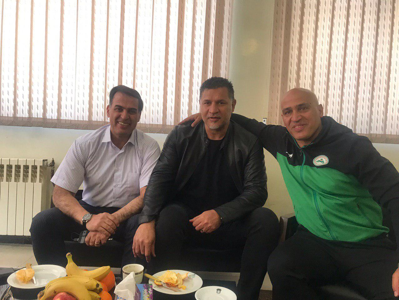 علیرضا منصوریان سرمربی و سعید آذری مدیرعامل باشگاه ذوب آهن لحظاتی با علی دایی در دفتر باشگاه به گفت و گو و خوش و بش پرداختند.