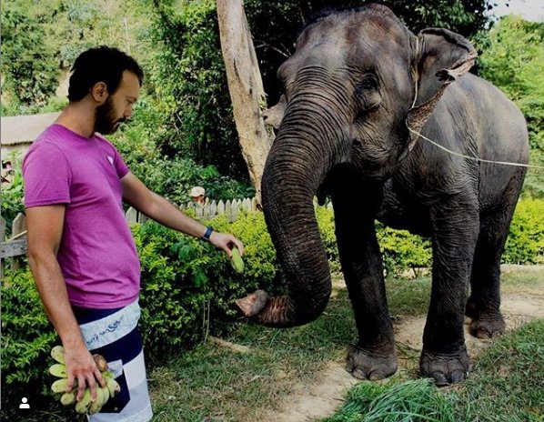 عکسی از موز دادن کامبیز دیرباز به یک فیل در تایلند را می بینید.