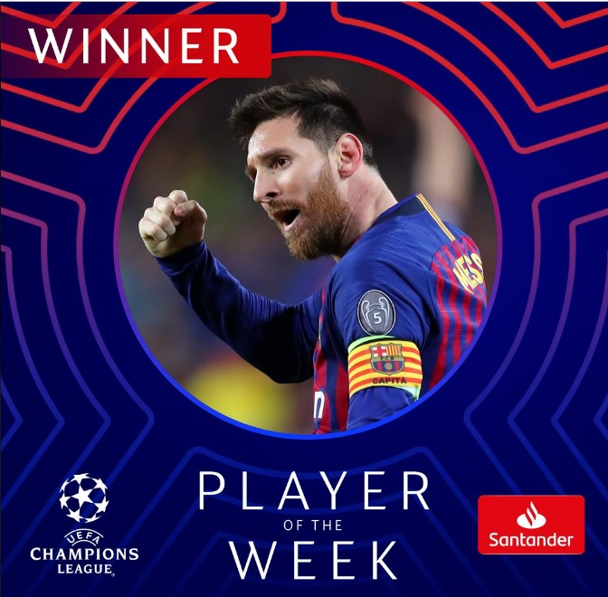 ابرستاره آرژانتینی بارسلونا بهترین بازیکن هفته لیگ قهرمانان اروپا شد.