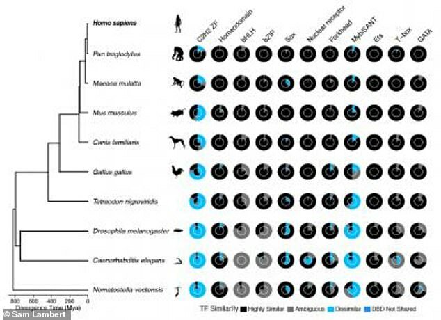طی این مطالعه پژوهشگران با در نظر گرفتن تفاوت در موقعیت آمینو اسیدهای کلیدی متوجه شدند که بسیاری از فاکتورهای رونویسی ژنتیکی انسانی دارای توالیهای مختلفی نسبت به همتایان خود در سایر حیوانات هستند.